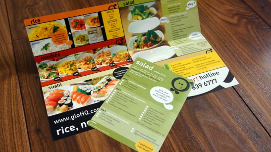 glo is a fast food restaurant in London, which is selling freshly prepared food such as rice, noodle, sushi, Salad. In this project, i need to photography all foods in menu which is using in the delivery menu (flyer), menu board design, place mate and help to design order form in their salad bar.